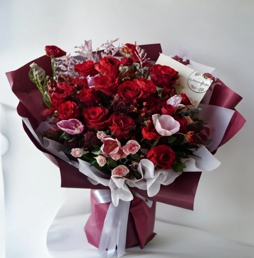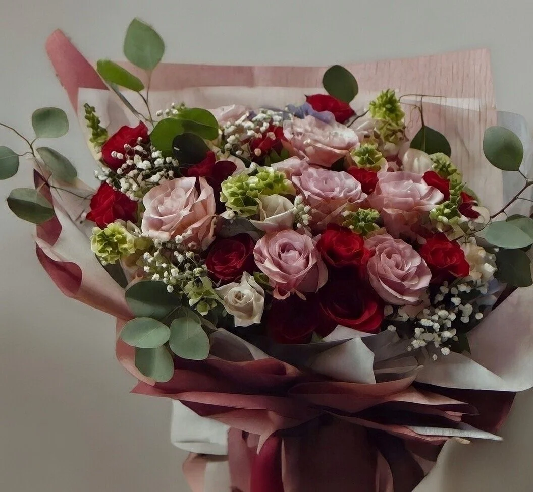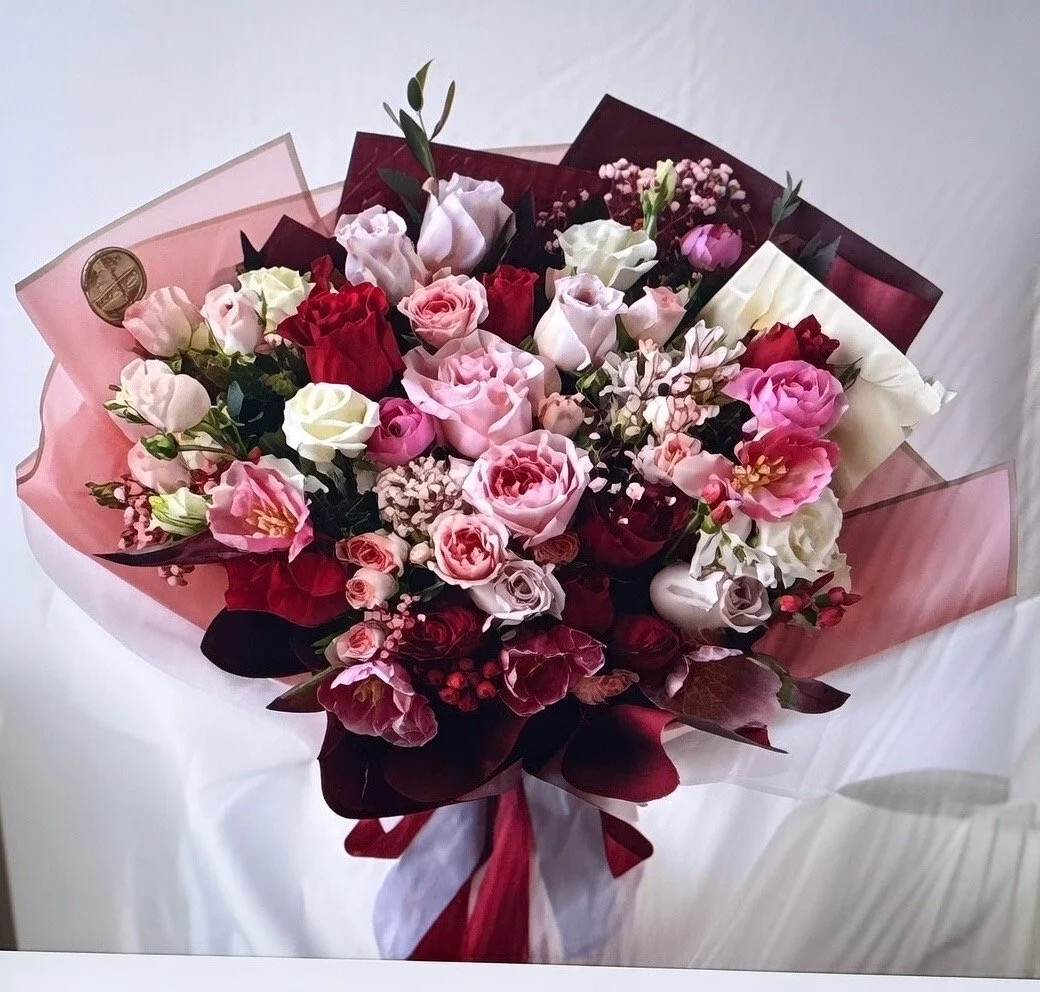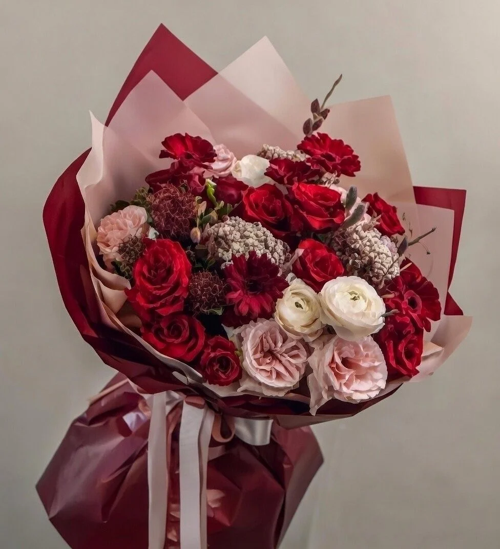 A curated collection of handcrafted Valentine’s bouquets featuring premium roses and seasonal blooms in romantic red, blush, and soft neutral tones. Each bouquet is thoughtfully designed, hand-wrapped in layered premium paper, and finished with refined detailing for a modern, elevated presentation.
